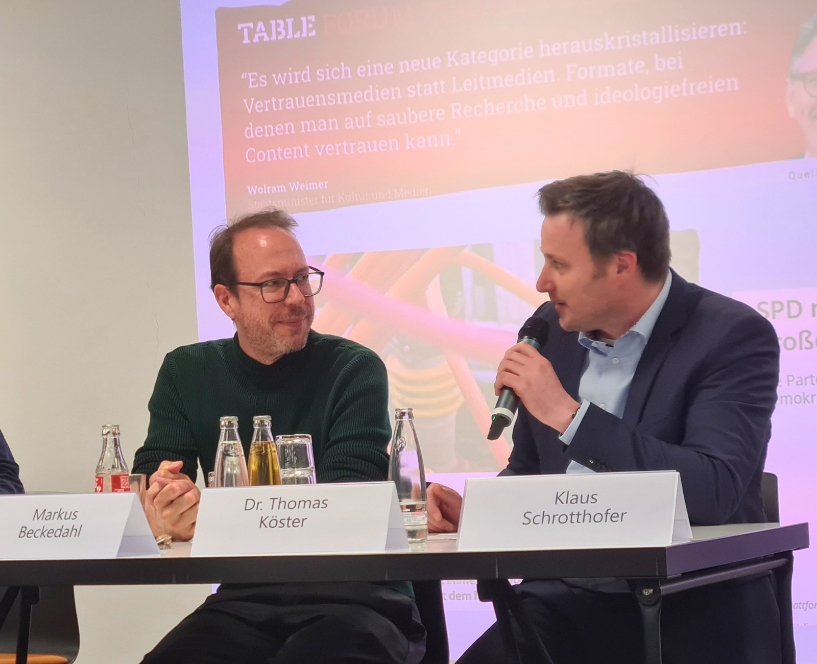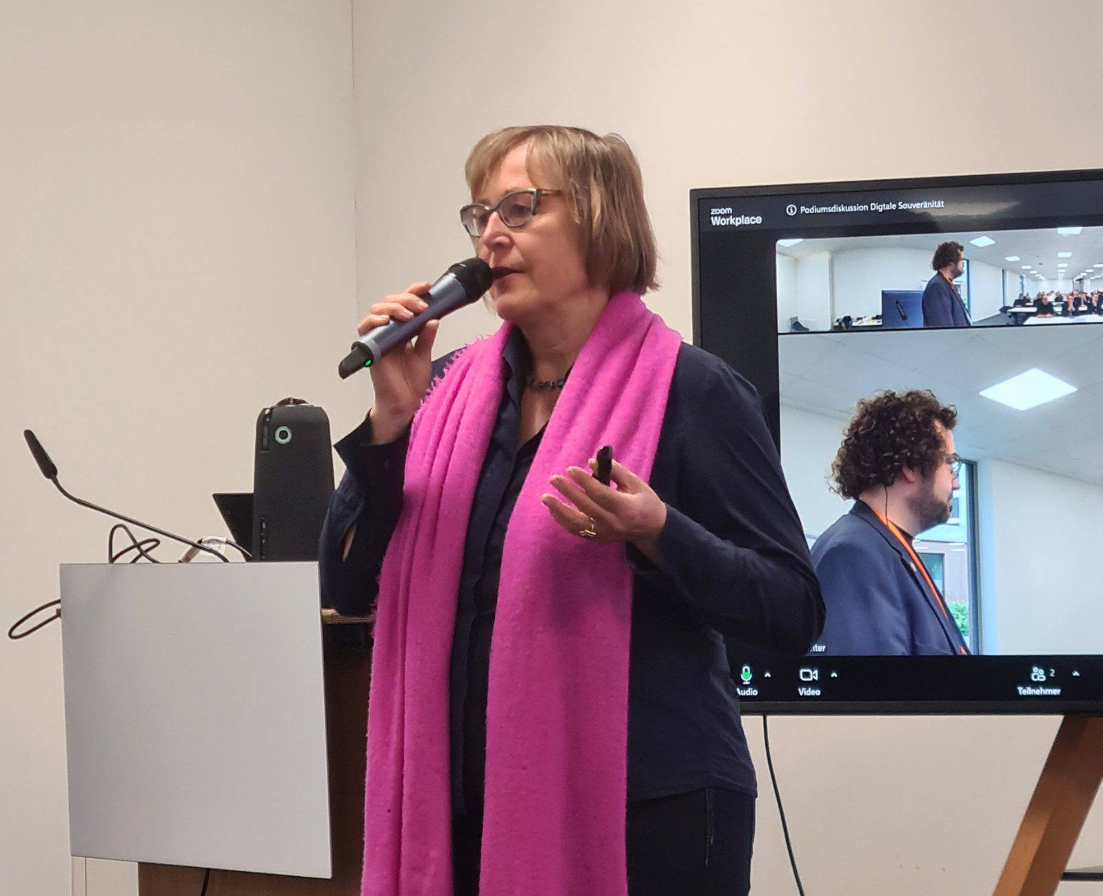 Die Dringlichkeit dieser Frage unterstrich Digitalexperte Markus Beckedahl: „Wir haben uns in der Vergangenheit zu sehr an wenige Monopolisten gebunden.“ So sei zum Beispiel die öffentliche Verwaltung laut Beckedahl zu etwa 95 % abhängig von Microsoft. „Die Gefahr eines sogenannten Kill Switch ist damit real – im Krisenfall könnten die USA deutschen Unternehmen und Behörden den Zugang zu essenziellen Software-Anwendungen, Zahlungsmitteln oder Datenspeichern verwehren.“