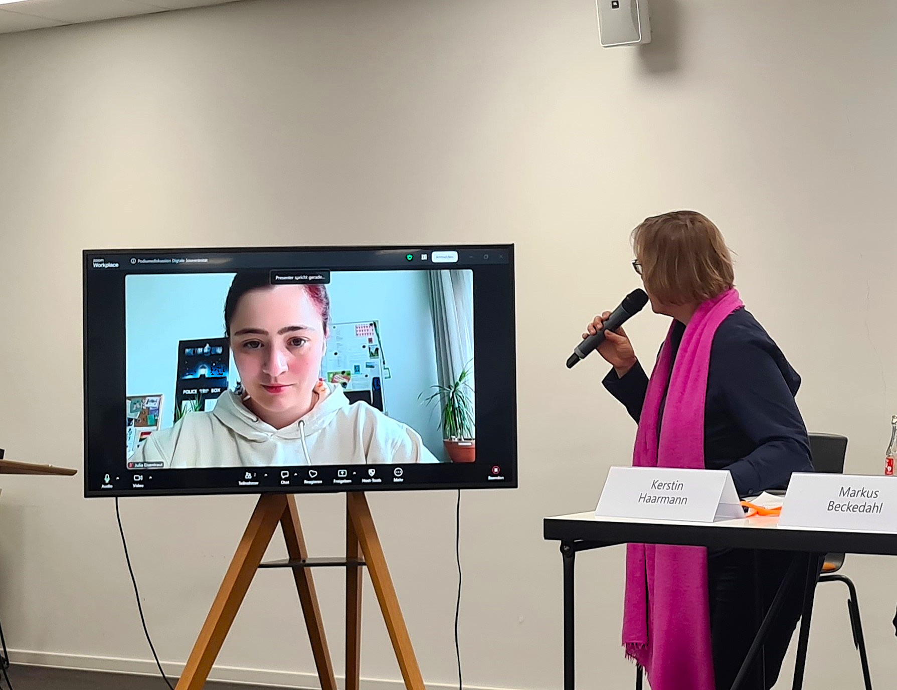 Als Ausgangspunkt der Diskussion formulierte unsere Geschäftsführerin Kerstin Haarmann die entscheidende Frage: „Wie kann Deutschland seine digitale Abhängigkeit von den großen US-amerikanischen Tech-Konzernen zum Schutz unserer Wirtschaft und unserer Demokratie verringern?“